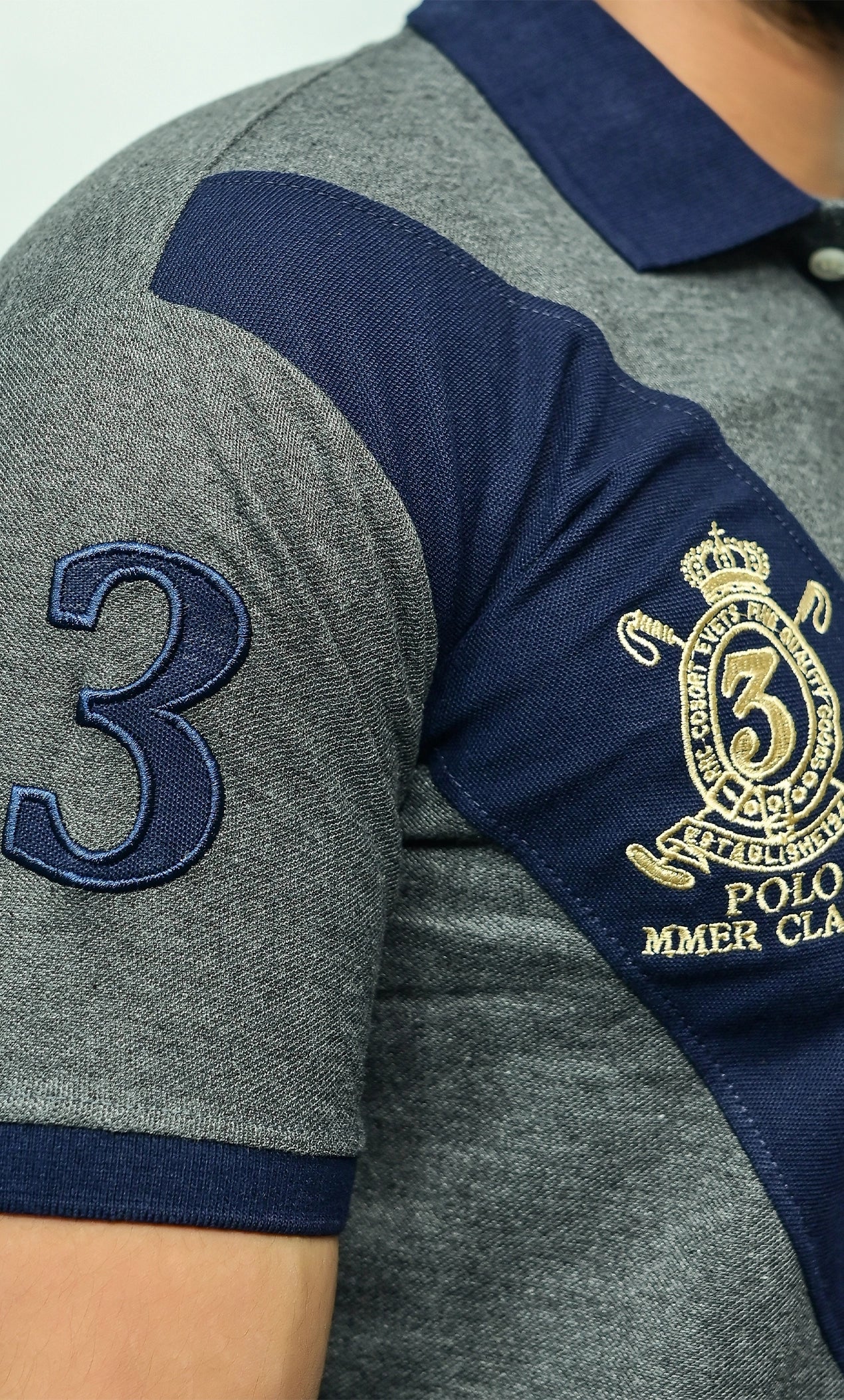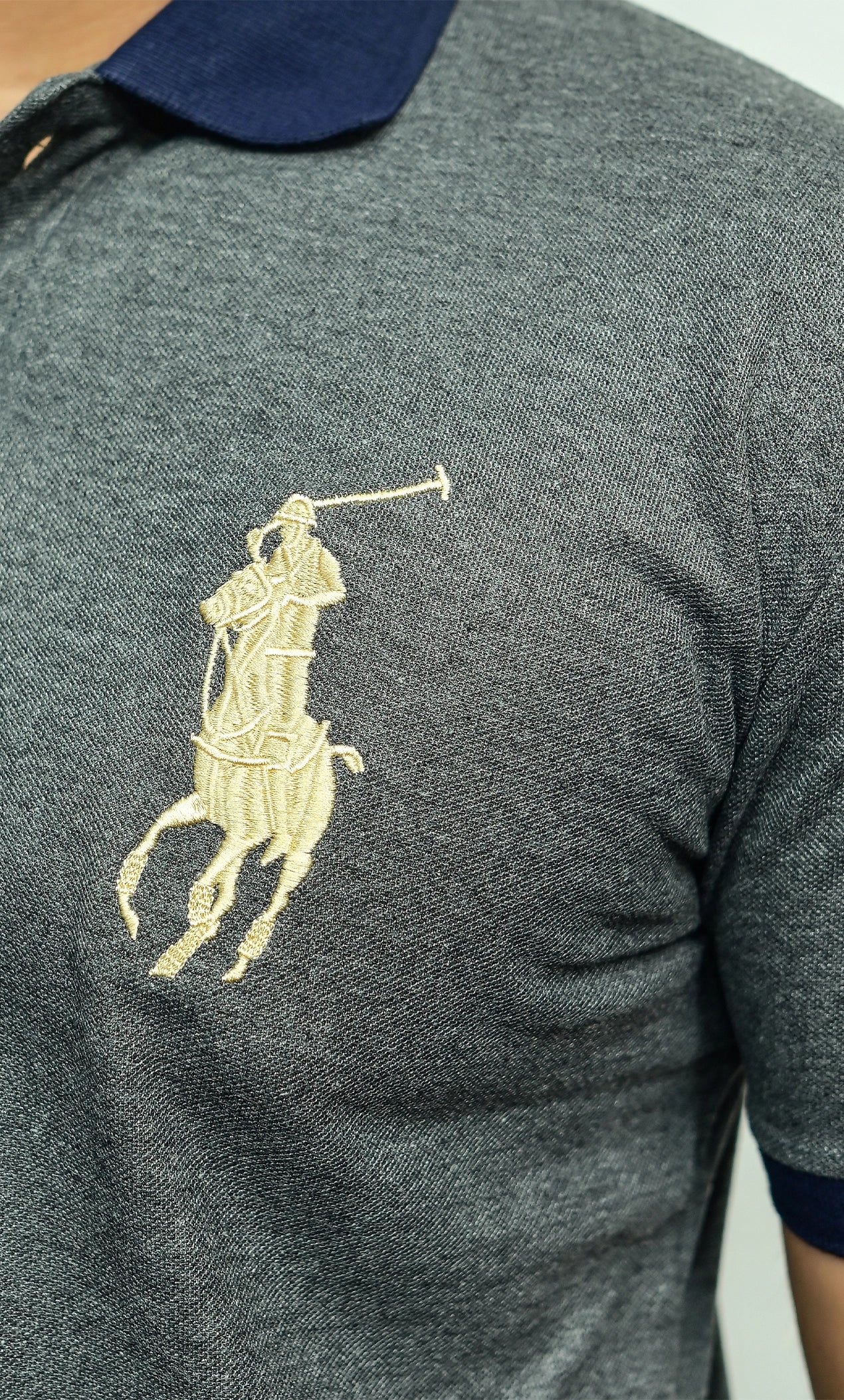 - RL Grey and Navy Polo Shirt combines classic style with refined Peque fabric.